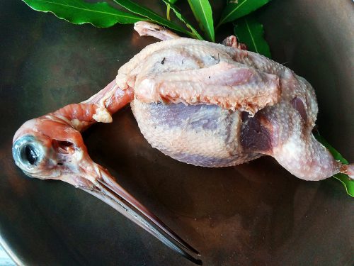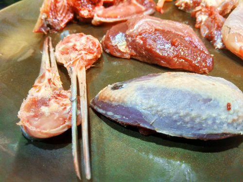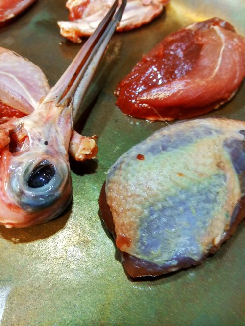 Una vez limpias y pasadas por el soplete para quitar la plumilla fina de la piel, despiezamos y guardamos las tripas, para elaborar nuestro paté de becada Y reservamos.