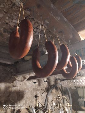 - Tripa natural de cerdo, cuerda y sitio seco y fresco para su curación