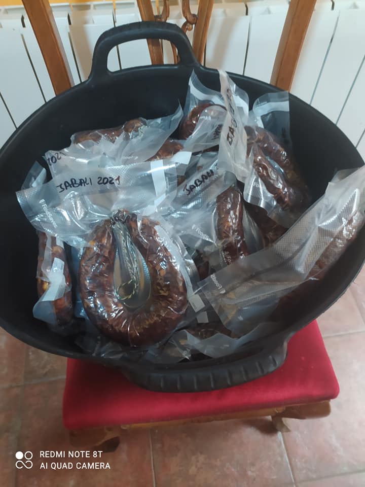 - 9 kilos de carne de jabalí (3 kilos de magro por kilo de tocino)