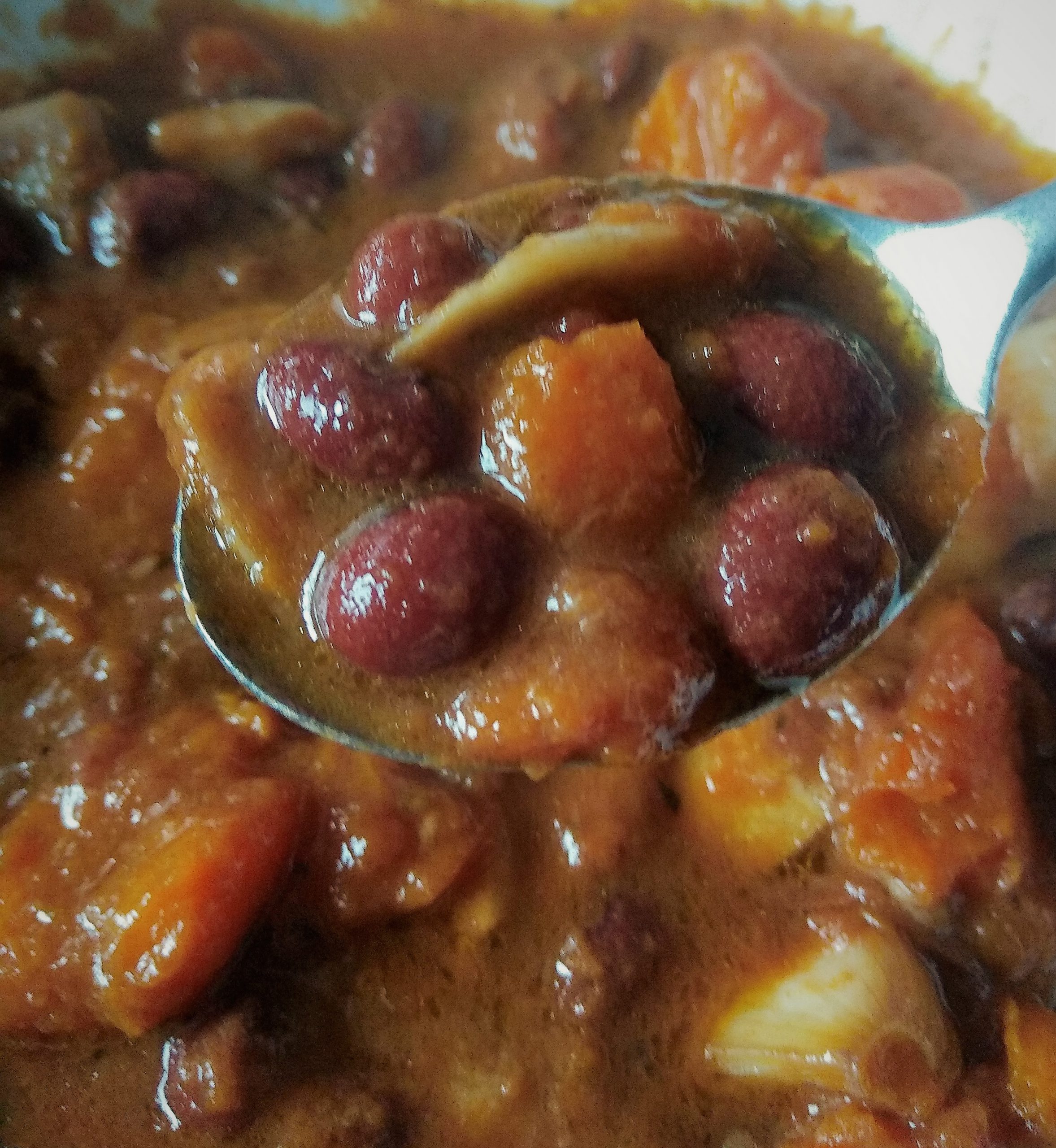 Receta de alubias pintas con alheira de caza y Boletus deshidratados