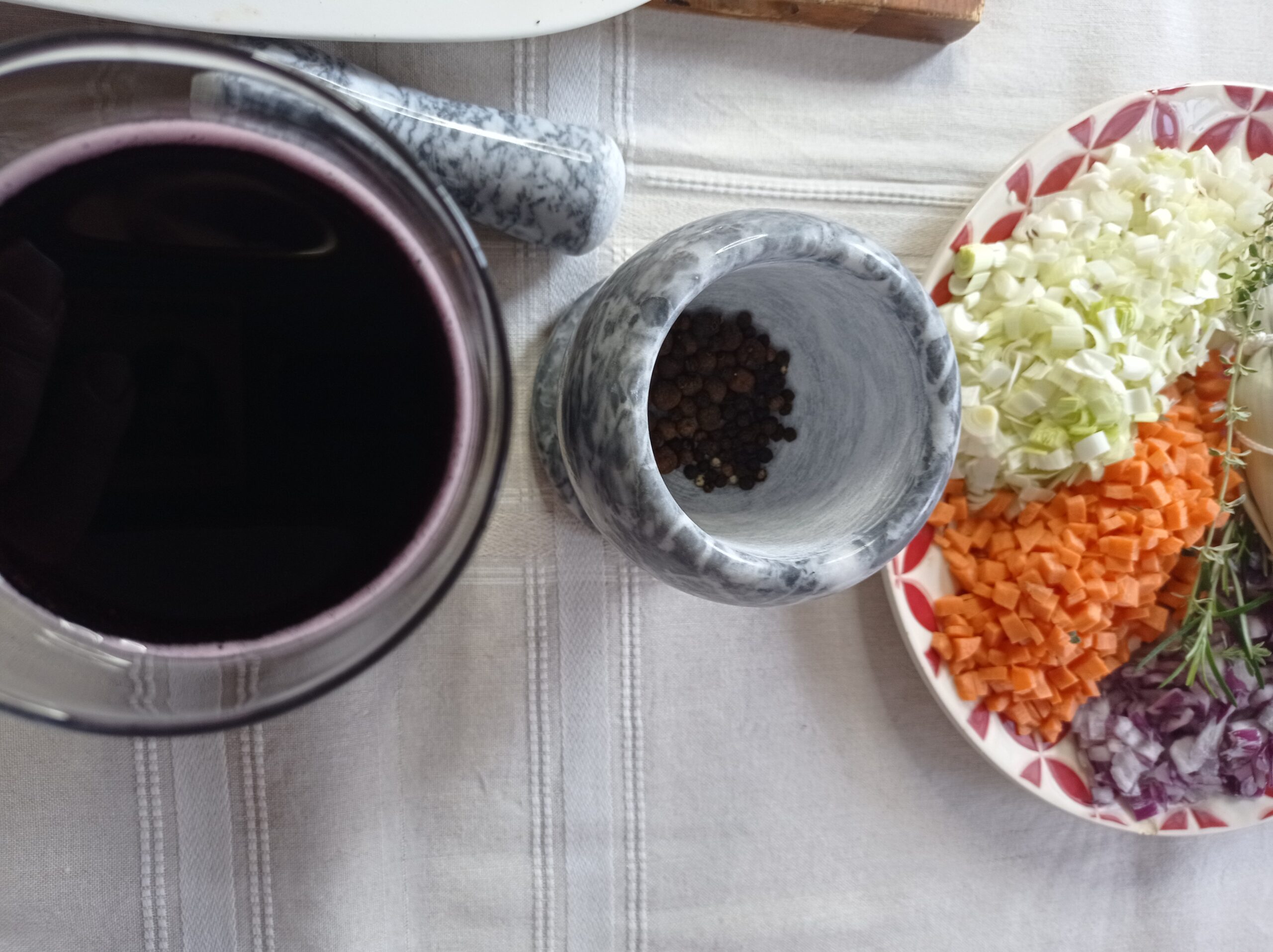 - 300 grs de carne picada de corzo ( al deshuesar la pata trasera, la babilla, va de lujo)