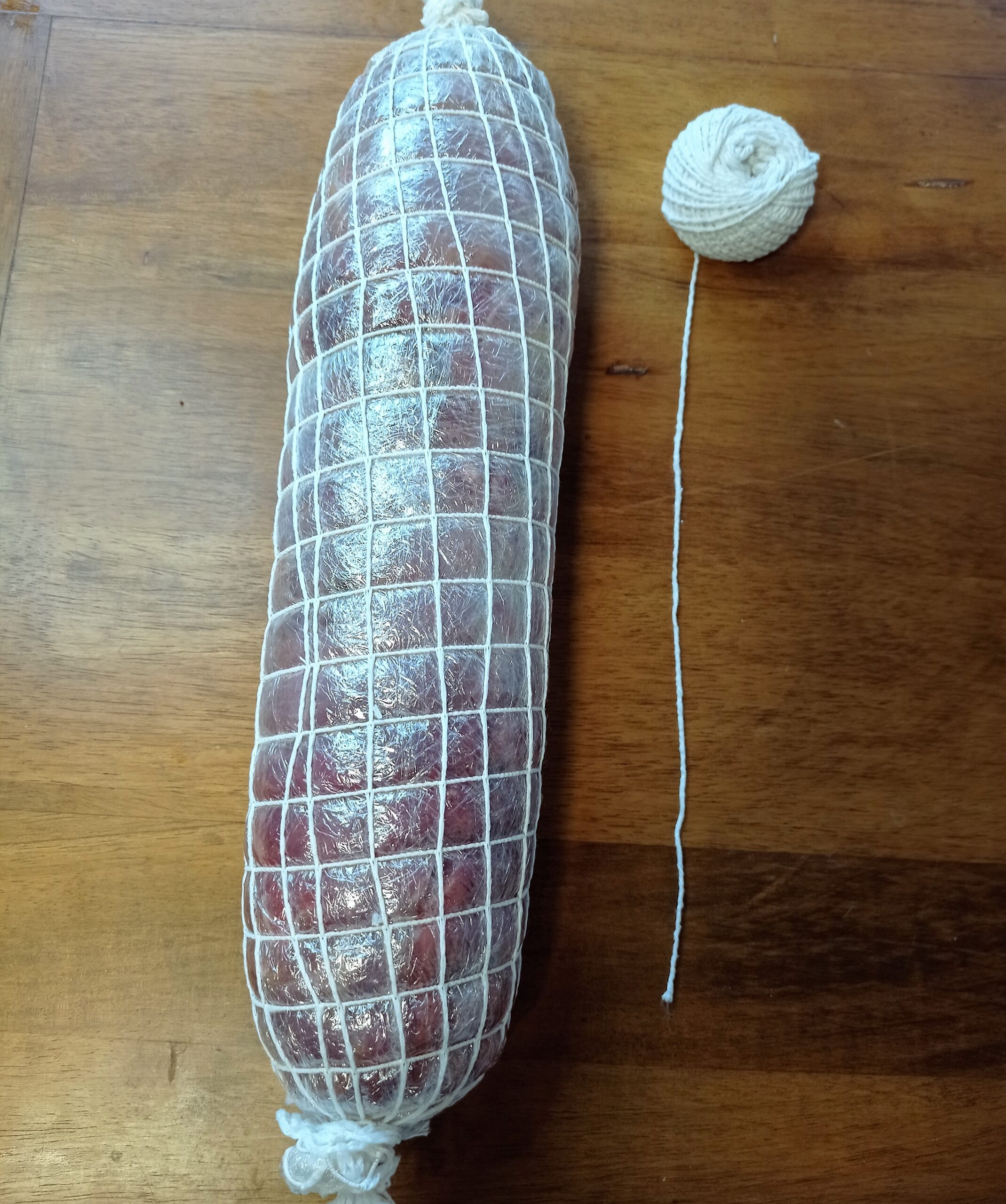 Si no quieres utilizar film, puedes envolver el rollo de conejo en redaño, tocino blanco, panceta…