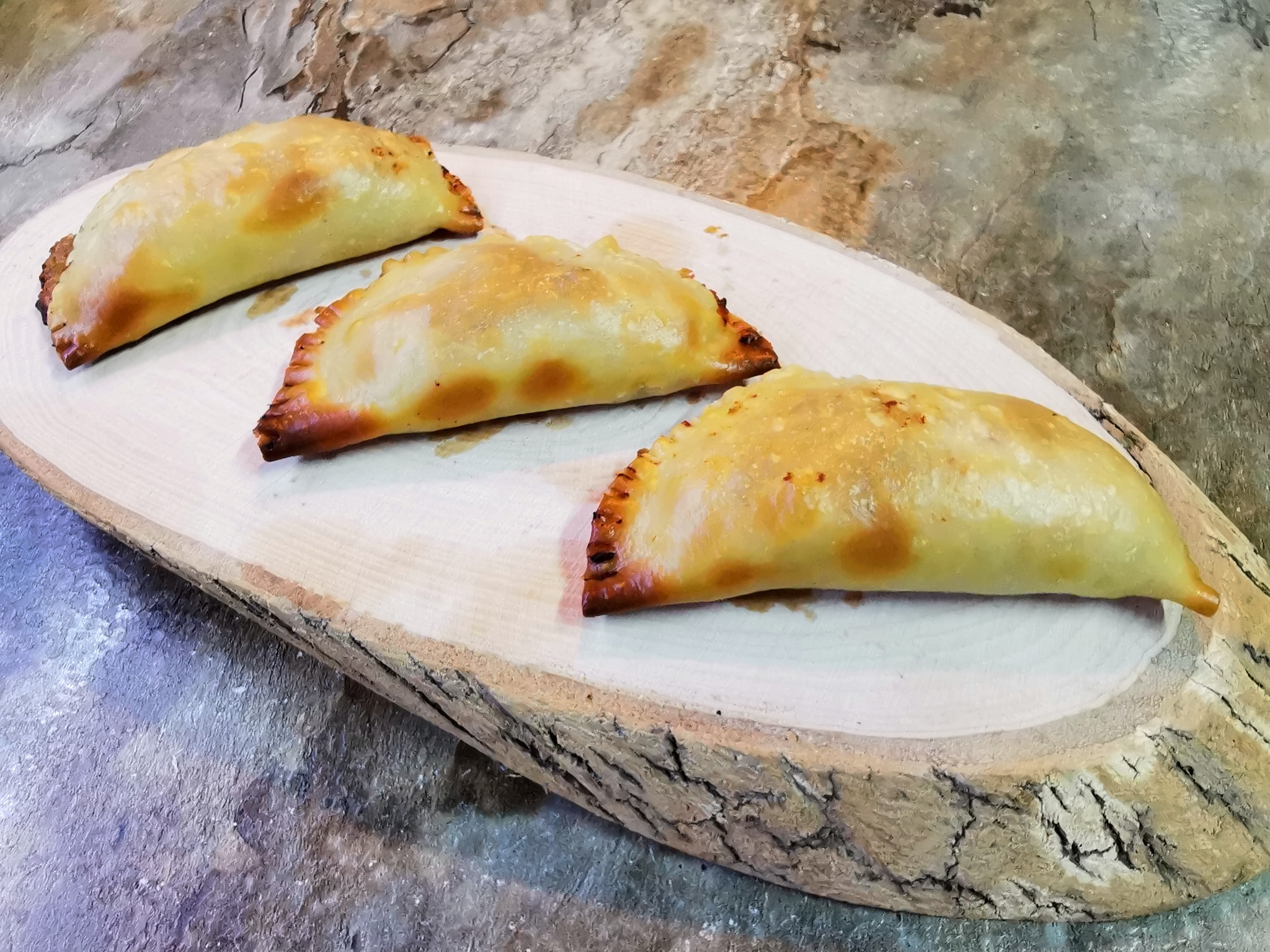 Empanadillas de paté de tórtola y manzana, con queso de oveja manchego, claro está, y cebolla caramelizada