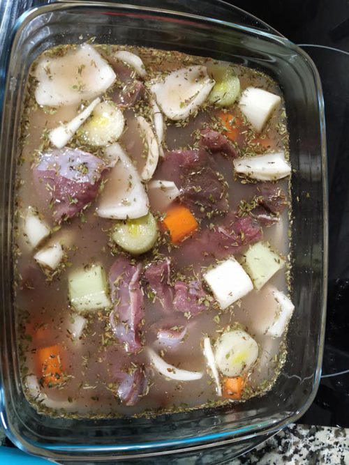 Estofado de ciervo con boletus y castañas / Galería / Por Administrador Autor: Cesar Jiménez & Irene Salinas TAMBIÉN TE PUEDE INTERESAR Estofado de ciervo Estofado de garreta de ciervo con setas Estofado de ciervo