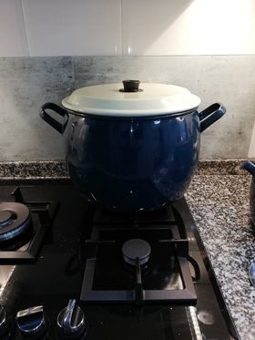 Para el guiso de fabes con pata de jabalí, en pota de las de siempre: