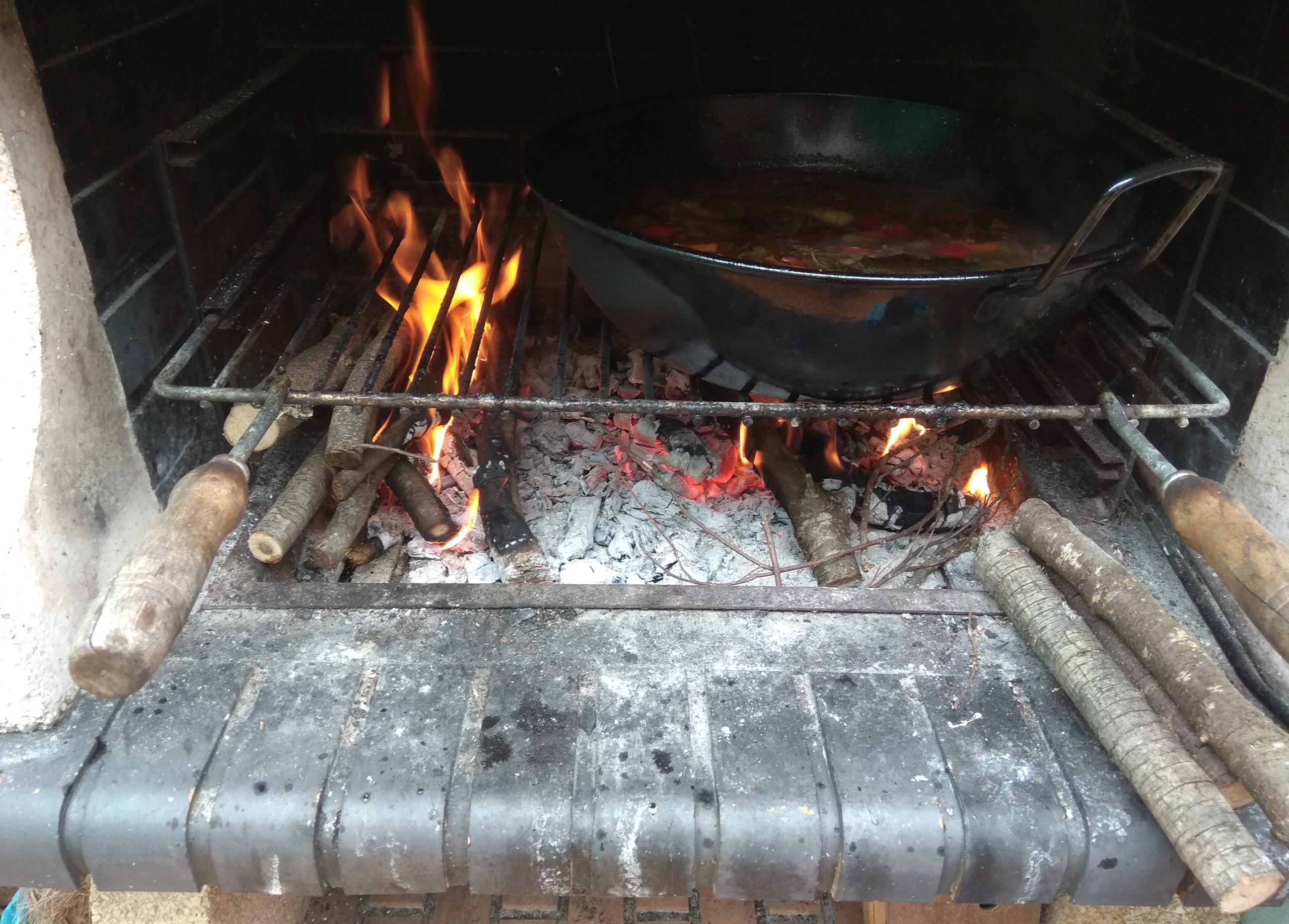 Este tipo de guisos, les suelo hacer en la barbacoa. Son de tiempo y la luz de la vitrocerámica tira, y sobre todo el sabor que aporta la leña ( utilizo carballo (roble) y encina) es un sabor que ni la cazuela tradicional, ni la olla exprés puede igualar. Si no dispones de barbacoa, o sitio al aire libre, no te preocupes, en cazuela tradicional queda también muy rico, eso si, a cocinar el fin de semana, que guisar por la noche da demasiada hambre y sueño y el precio de la luz se ha puesto por las nubes.