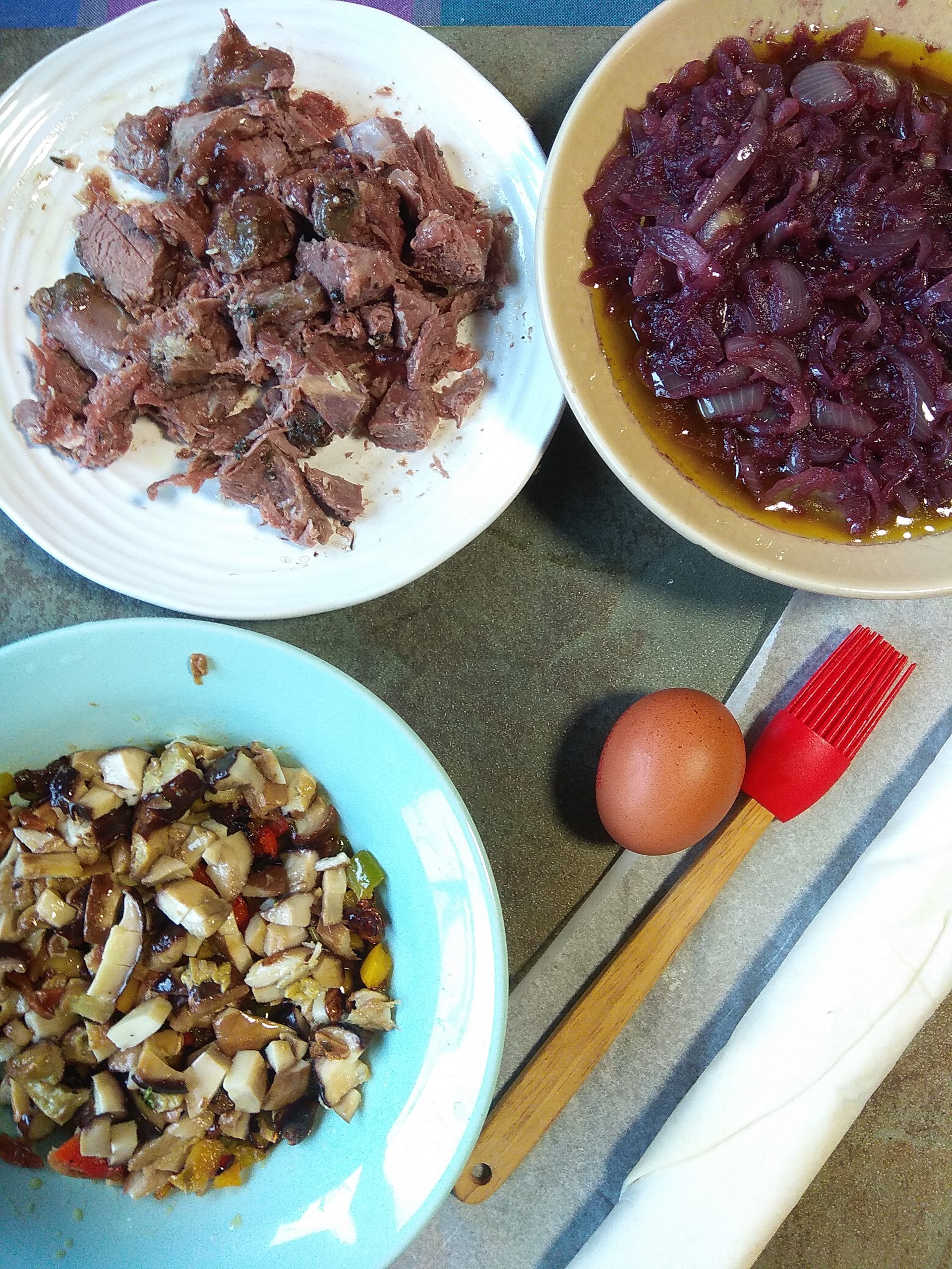Como de la terrina de corzo, nos sobró un poquito, quise hacer con dos masas de hojaldre de esas del súper que vienen frescas, una empanada media luna y unos hojaldres individuales para el picoteo del día siguiente. Con una buena ensalada variada o un plato ligero de primero, tenemos resuelta la comida. No me digas que no te gusta la idea…