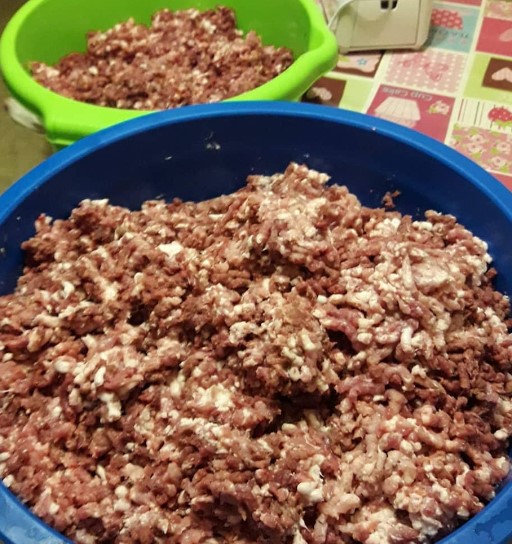 Para empezar, hay que picar la carne de jabalí y la panceta, a partes iguales. La carne de jabalí al carecer de grasa necesita un porcentaje de esta, por eso se añade carne de cerdo entreverada (tocino con carne). Cada uno tiene su receta y su proporción de carne de caza y cerdo. Depende de si nos gusta este tipo de chacina más jugosa o no. Con esta proporción de nuestro compañero obtendremos un embutido sabroso y natural.