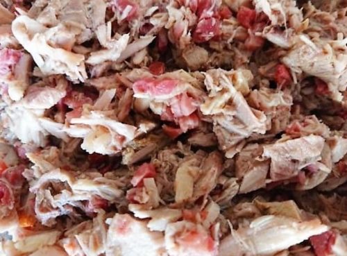 - Cocer los conejos, sal, verduras, puerro, zanahoria, etc… el tiempo necesarios para poder desmigar su carne sin problemas.