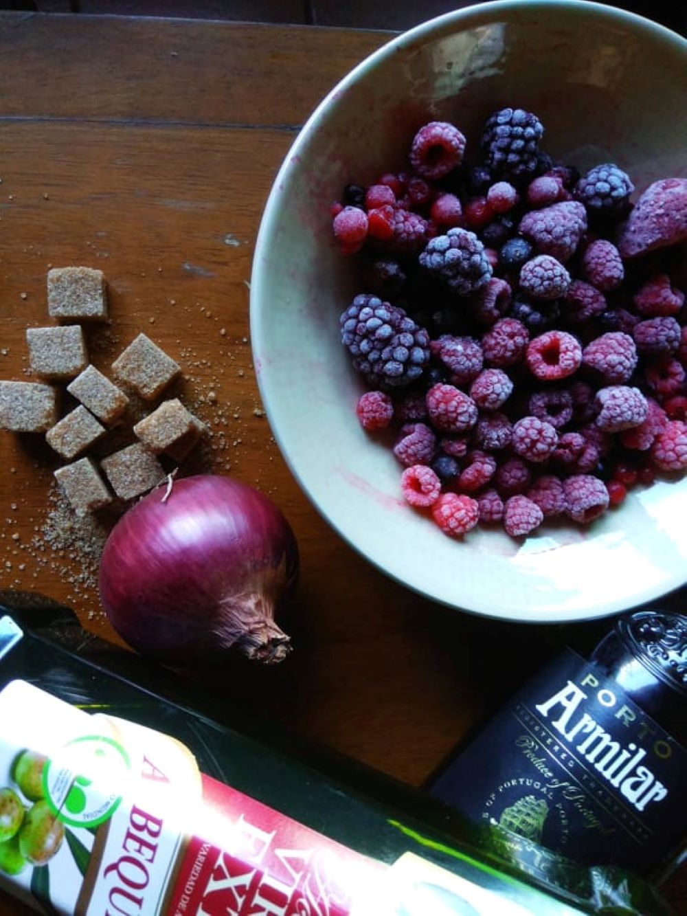 Tres o cuatro cucharadas de mermelada de frutos rojos, casera o comprada