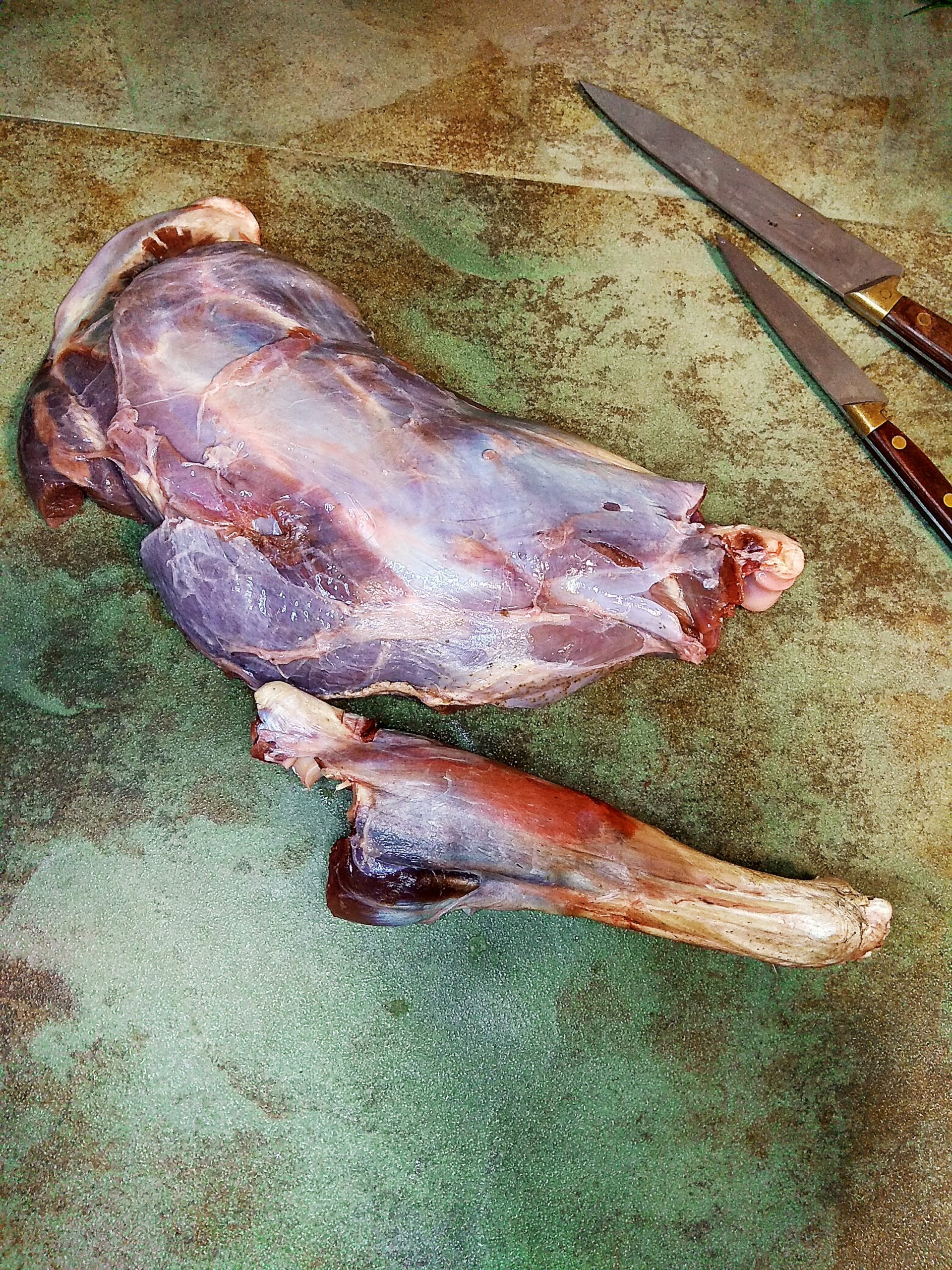 En cuanto esté descongelada, haremos un corte en la articulación para separar el jarrete ( este le vamos a utilizar en otra receta, después de cocinado a baja temperatura) Receta de alubias arrocinas con corzo para que nos quepa la pieza entera dentro de la bolsa al vacío especial para alimentos