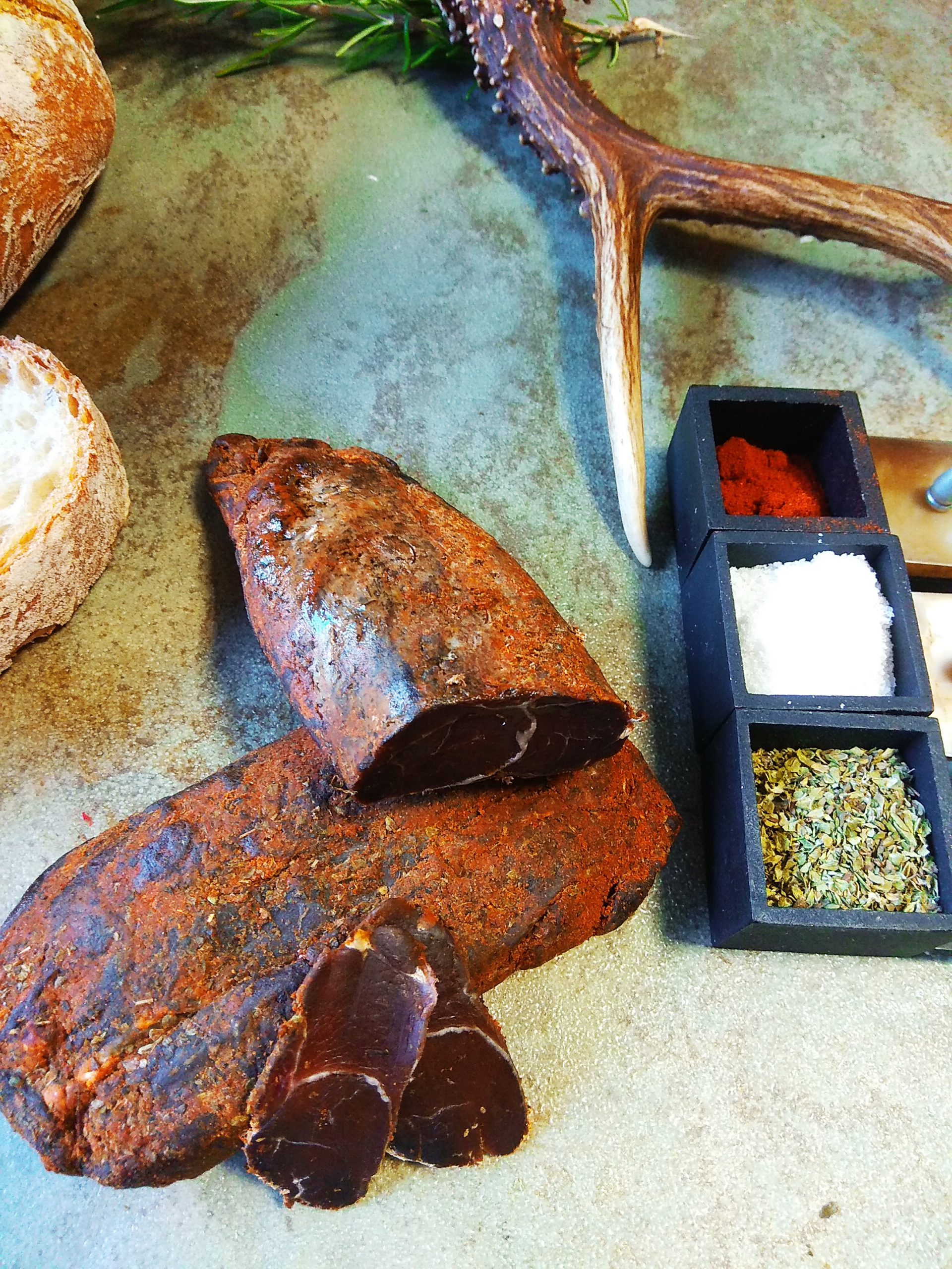 Sacamos nuestra cecina de corzo de la nevera, o del plástico de vacío si es como la tenemos guardada, de esta forma al vacío, se puede congelar para que no se nos seque en exceso dentro de la nevera. La idea es sacarla a temperatura ambiente, para poder cortar lonchas finitas. En la página de Facebook lo he contado varias veces, si el trozo de cecina te quedó excesivamente curado, duro. No te preocupes se puede recuperar en un par de días y si no lo dices, nadie sabrá que estaba como un ladrillo. Envuelve la pieza en una tela de hilo ( no deja restos de fibras) ligeramente humedecido en agua y devuélvela a la nevera, en un par de días o tres está lista para poder cortar a cuchillo sobre la tabla, deliciosas lonchas finitas.